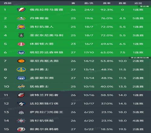 西部最新积分榜